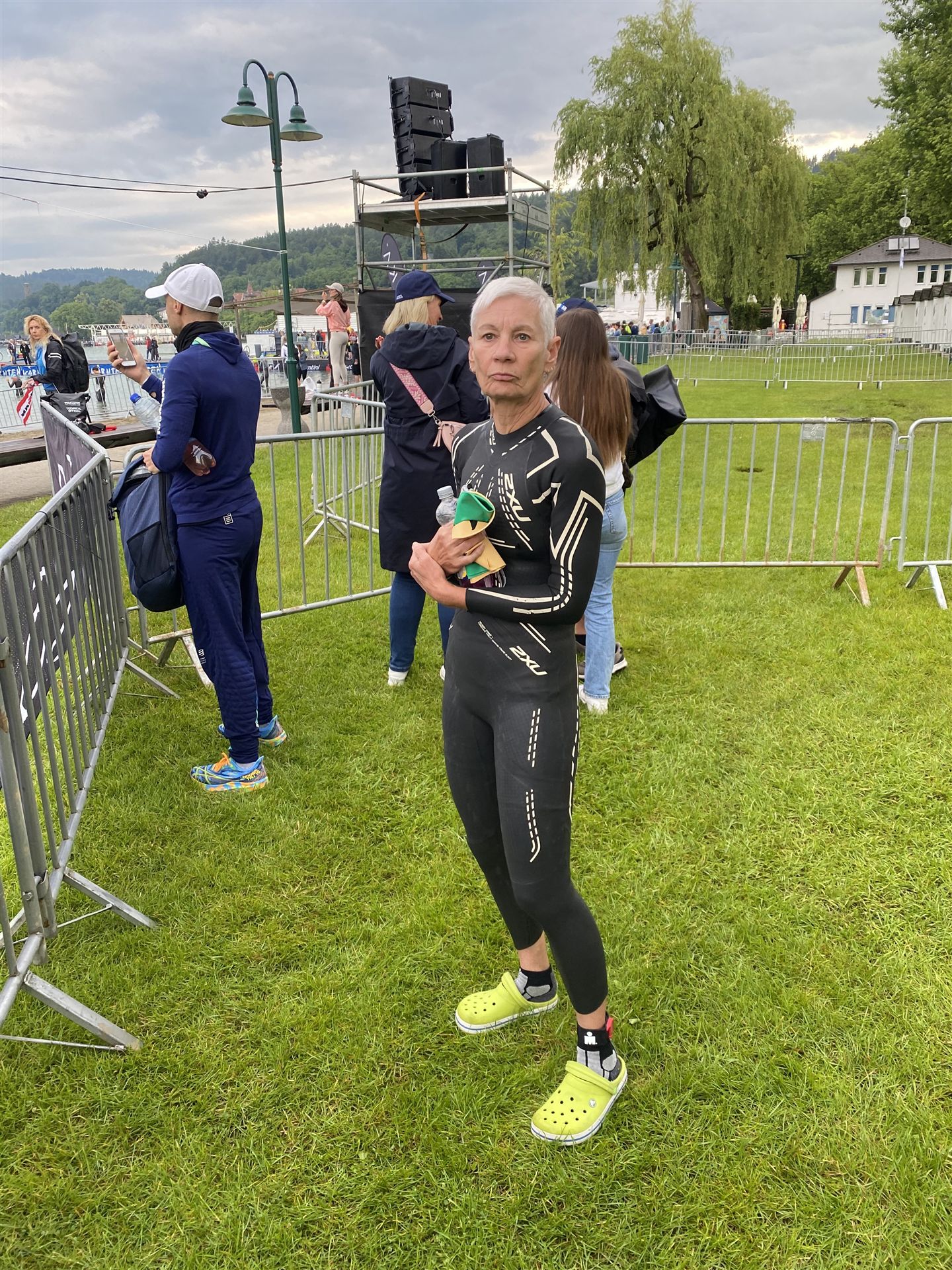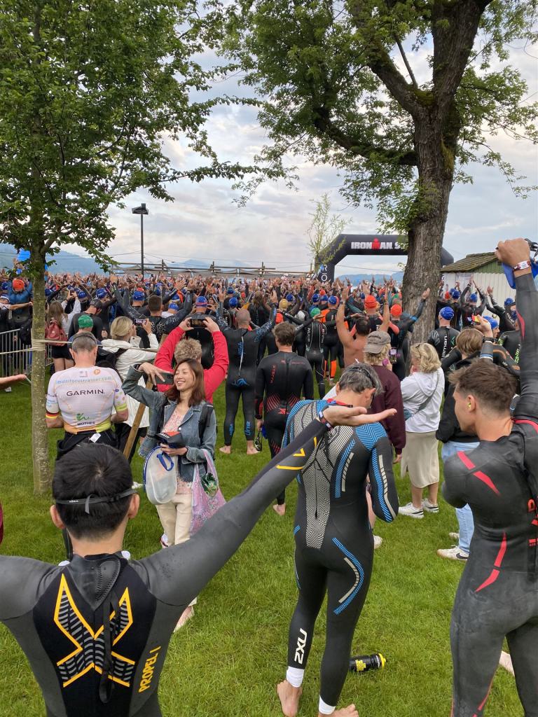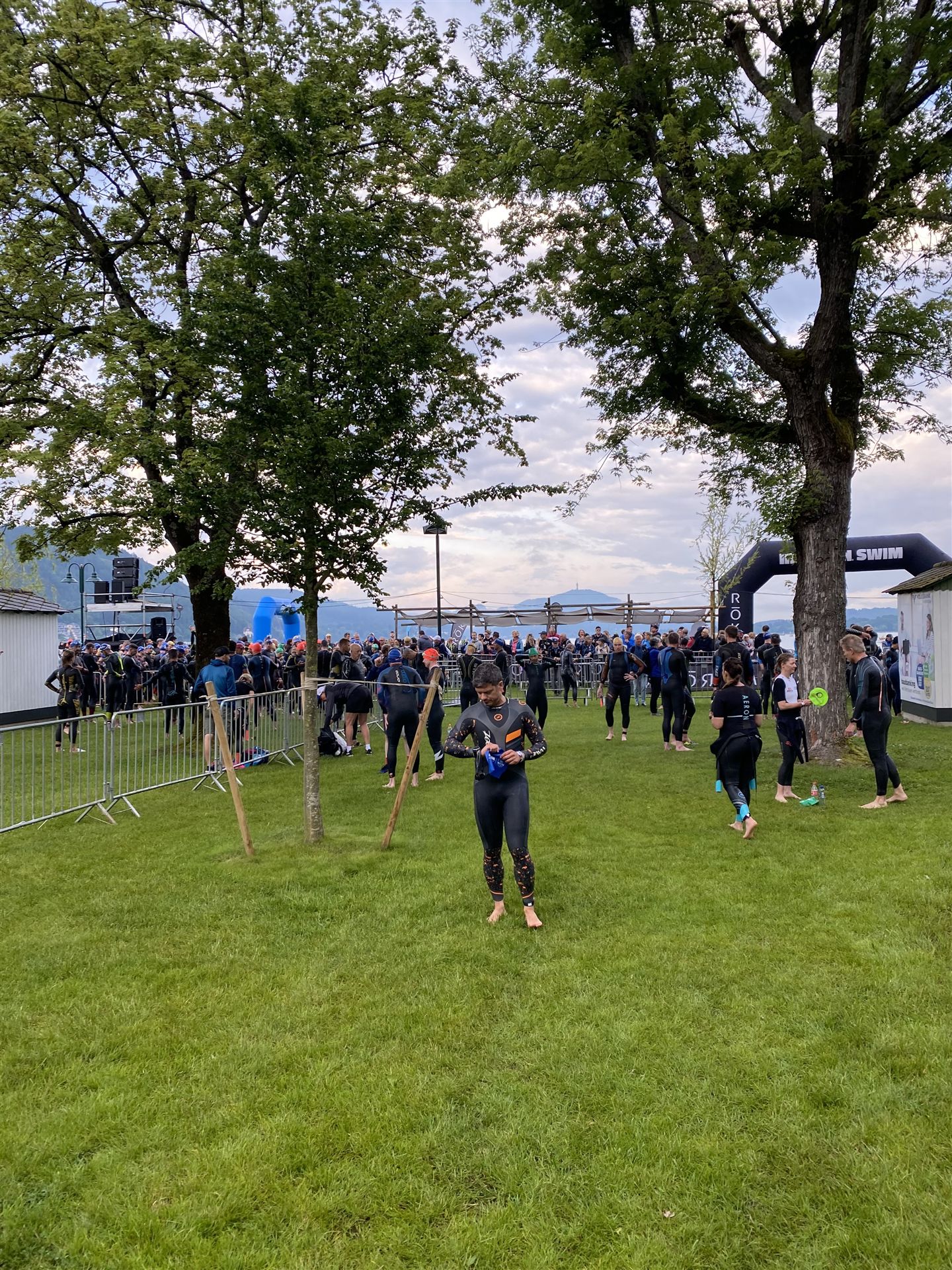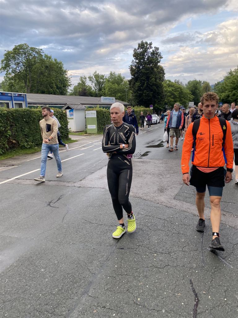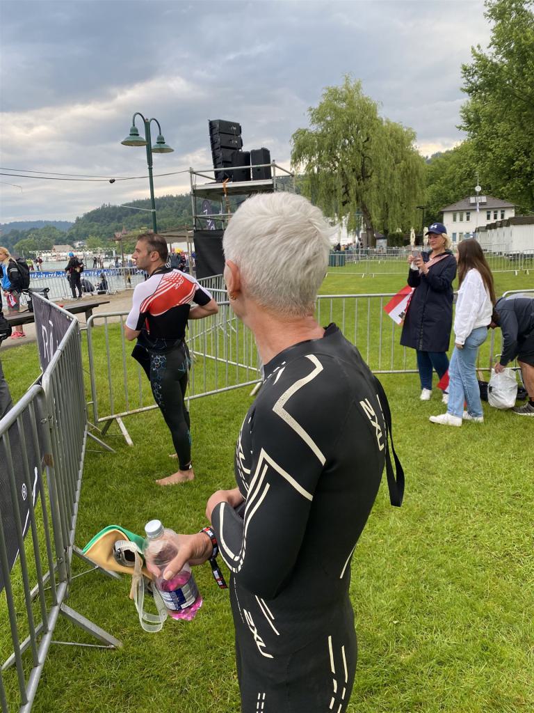 Normalerweise mache ich gerne vor der ersten Langdistanz eine Mitteldistanz um meine Form zu prüfen. In diesem Fall stand am 16.06.2024 direkt eine Langdistanz in Österreich an. Der IM in Klagenfurt ist ein sehr schöner Wettkampf, an dem ich bereits mehrmals teilgenommen habe. Die Wettervorhersage für den Wettkampftag war durchwachsen. Ich mag gerne warme Temperaturen, je wärmer desto besser. In diesem Fall lag die Vorhersage bei circa 22-23 Grad Lufttemperatur mit etwas Regen. Die Wassertemperatur lag ebenfalls bei knapp 20 Grad, keine Bedingungen, die ich gerne mag. Aber egal, das Leben ist kein Wunschkonzert und das Wetter kann man nicht beeinflussen. Die Nacht vor dem Wettkampf ist immer etwas kurz, man schläft auch etwas unruhig. Bereits um 3:30 Uhr war ich wach und bin auch direkt aufgestanden. Für den Wettkampf habe ich bereits alles gerichtet. Die Wechselzone öffnet am Wettkampftag um 5:00 Uhr, ich bin pünktlich da und pumpe noch einmal meine Reifen auf und fülle Getränke und Gel auf. Während der ganzen Zeit regnet es, es kann nur noch besser werden. Erstaunlicherweise nimmt man solche Dinge am Wettkampftag einfach hin, man hat keinen Einfluss.