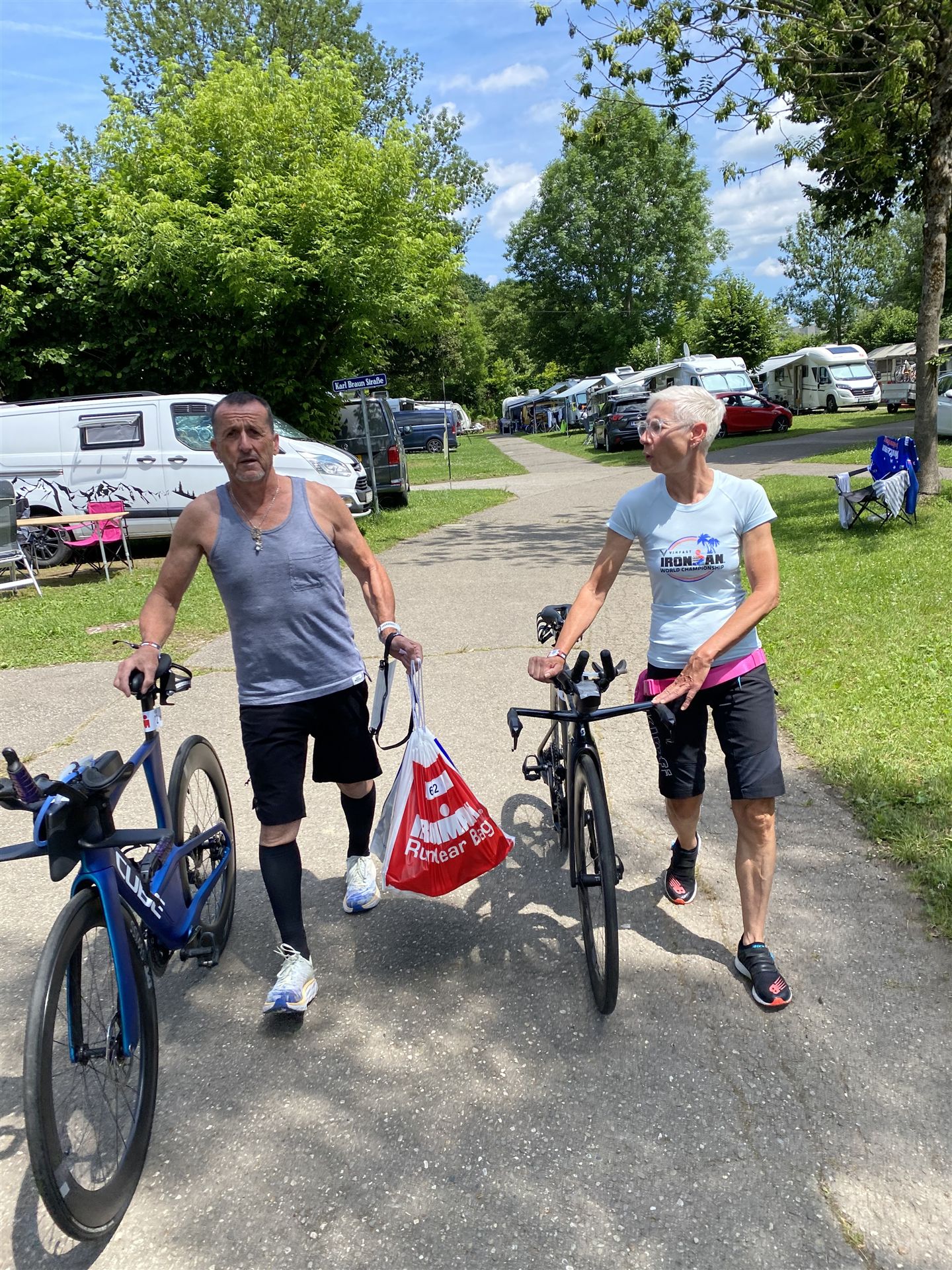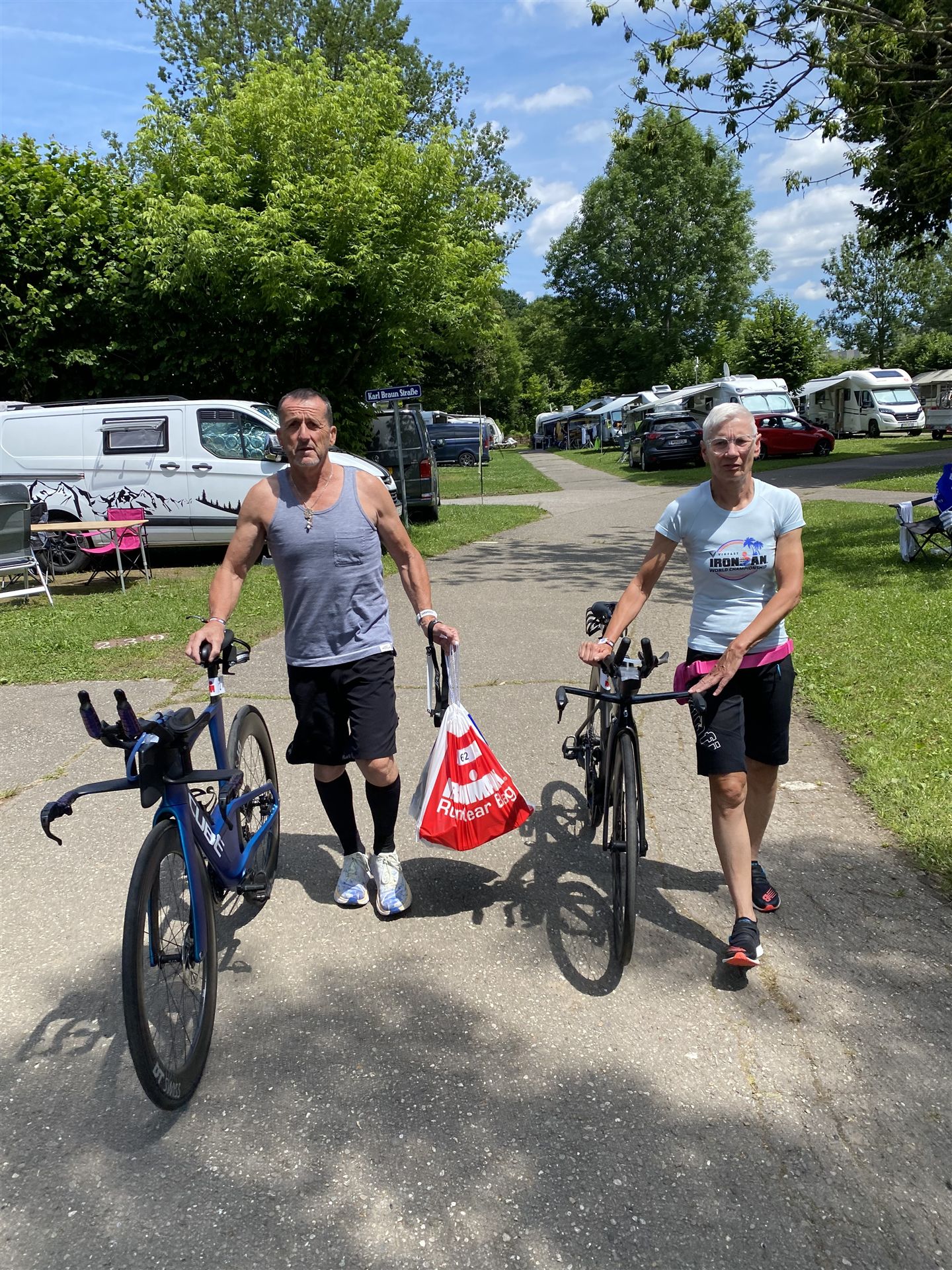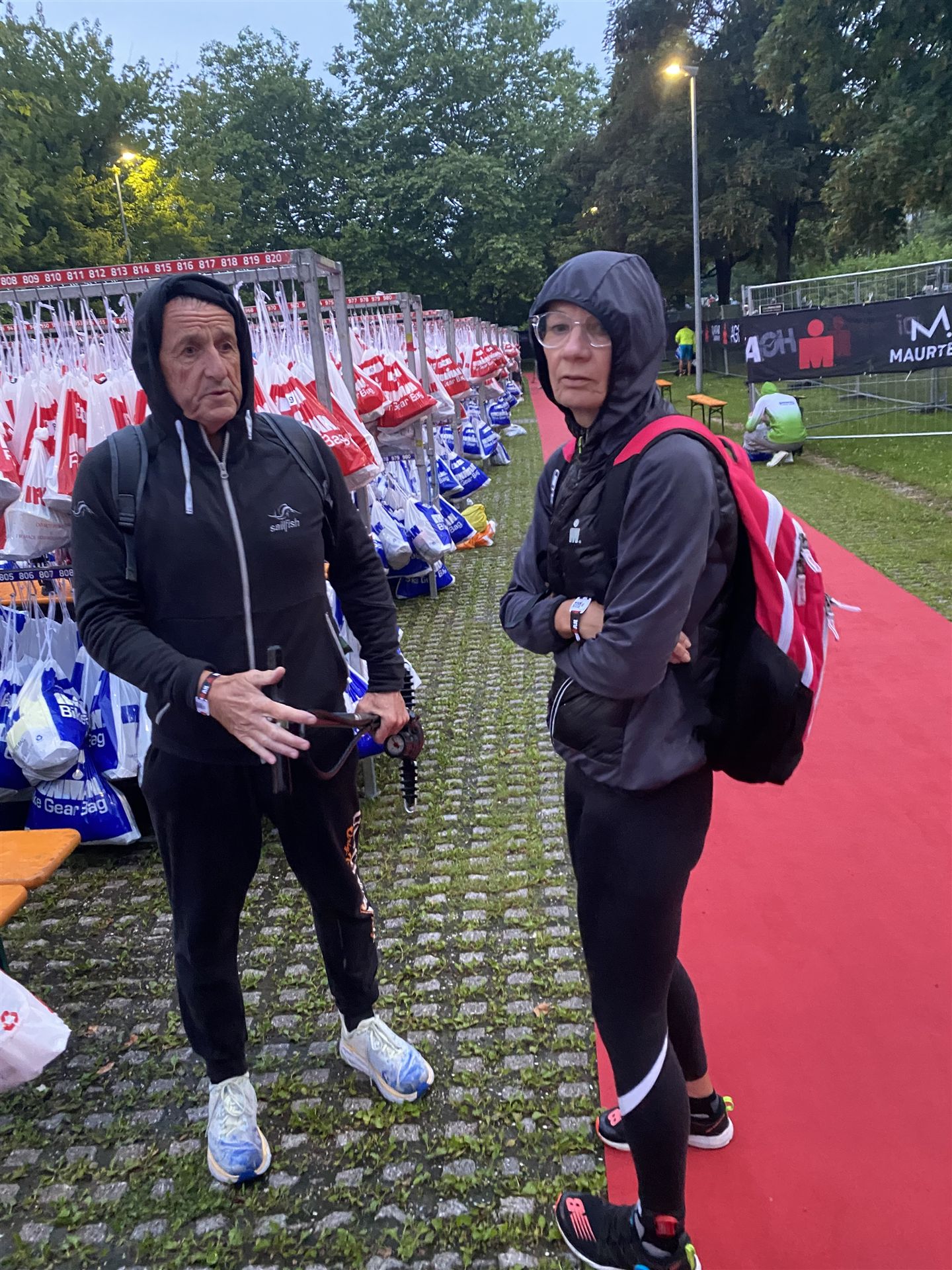 Normalerweise mache ich gerne vor der ersten Langdistanz eine Mitteldistanz um meine Form zu prüfen. In diesem Fall stand am 16.06.2024 direkt eine Langdistanz in Österreich an. Der IM in Klagenfurt ist ein sehr schöner Wettkampf, an dem ich bereits mehrmals teilgenommen habe. Die Wettervorhersage für den Wettkampftag war durchwachsen. Ich mag gerne warme Temperaturen, je wärmer desto besser. In diesem Fall lag die Vorhersage bei circa 22-23 Grad Lufttemperatur mit etwas Regen. Die Wassertemperatur lag ebenfalls bei knapp 20 Grad, keine Bedingungen, die ich gerne mag. Aber egal, das Leben ist kein Wunschkonzert und das Wetter kann man nicht beeinflussen. Die Nacht vor dem Wettkampf ist immer etwas kurz, man schläft auch etwas unruhig. Bereits um 3:30 Uhr war ich wach und bin auch direkt aufgestanden. Für den Wettkampf habe ich bereits alles gerichtet. Die Wechselzone öffnet am Wettkampftag um 5:00 Uhr, ich bin pünktlich da und pumpe noch einmal meine Reifen auf und fülle Getränke und Gel auf. Während der ganzen Zeit regnet es, es kann nur noch besser werden. Erstaunlicherweise nimmt man solche Dinge am Wettkampftag einfach hin, man hat keinen Einfluss.